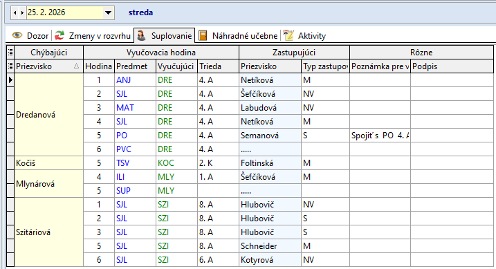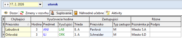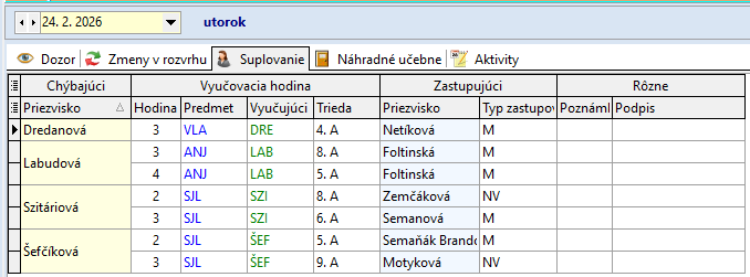 Žiaci, ktorí sa nezúčastnia korčuľovania: Bendík (2.A), Tulej (4.A), Kováčová (9.A), Bilá (8.A) sa zhromaždia v 2.A. Dozor v 2.A má počas 4. hodiny – Džubáková, počas 5. hodiny - Krajňáková
