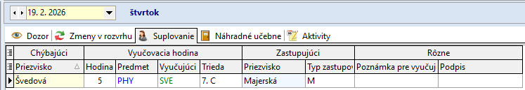 Ružbacká A. 1. - 5. hodinu zastupuje P. Zavacká
