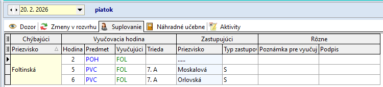 20.2.2026 Spojené triedy:  6.C + 7.C, učí sa podľa 6.C počas 1., 3., 4. hod.