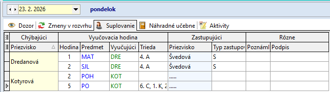 9.10.2023: p. Zavacká supl. rozvrh p. Halásovej
