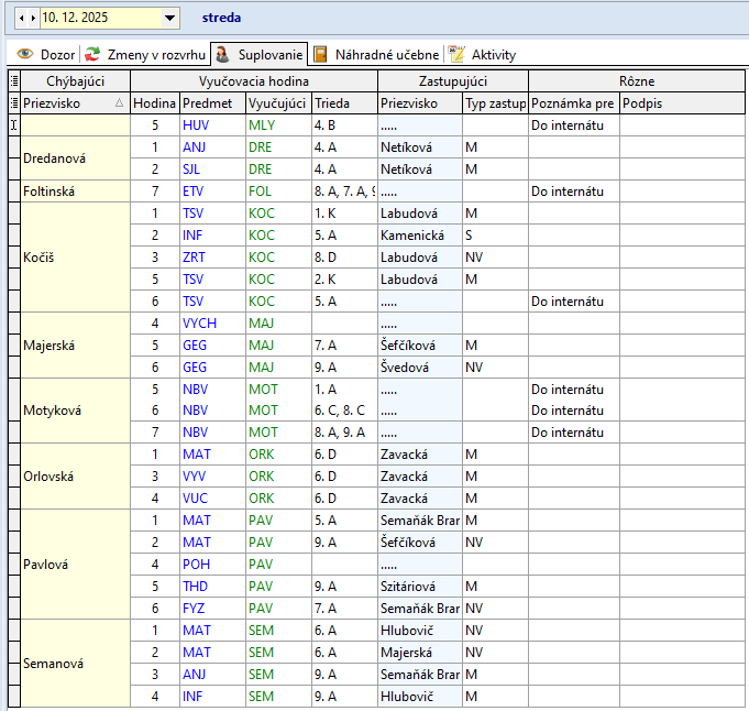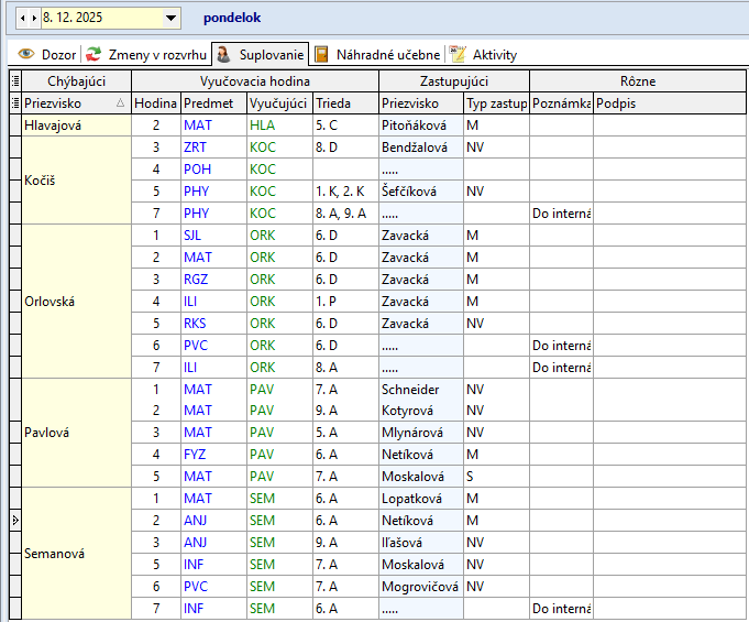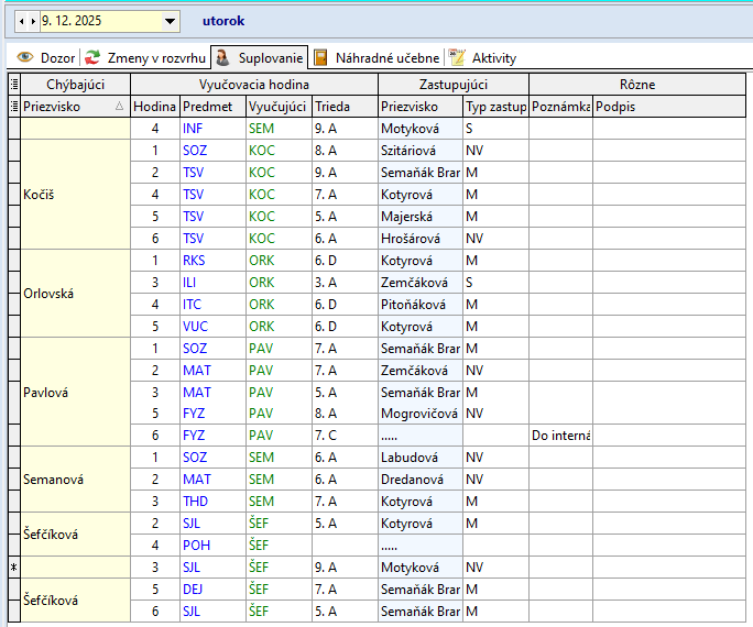Žiaci, ktorí sa nezúčastnia korčuľovania: Bendík (2.A), Tulej (4.A), Kováčová (9.A), Bilá (8.A) sa zhromaždia v 2.A. Dozor v 2.A má počas 4. hodiny – Džubáková, počas 5. hodiny - Krajňáková