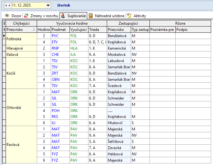1.12.2025 Spojené triedy 6.C + 6.D , učí sa podľa 6.C, 1.K + 2.K , učí sa podľa 2.K