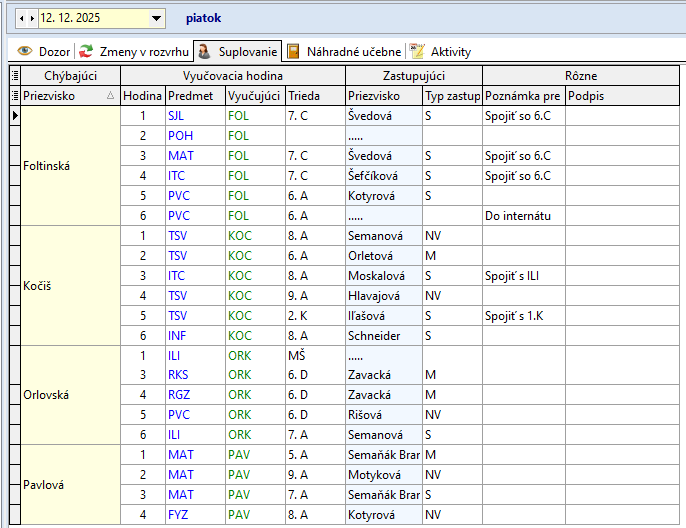 2.12.2025 Spojené triedy 6.C + 6.D , učí sa podľa 6.C, 1.K + 2.K , učí sa podľa 2.K