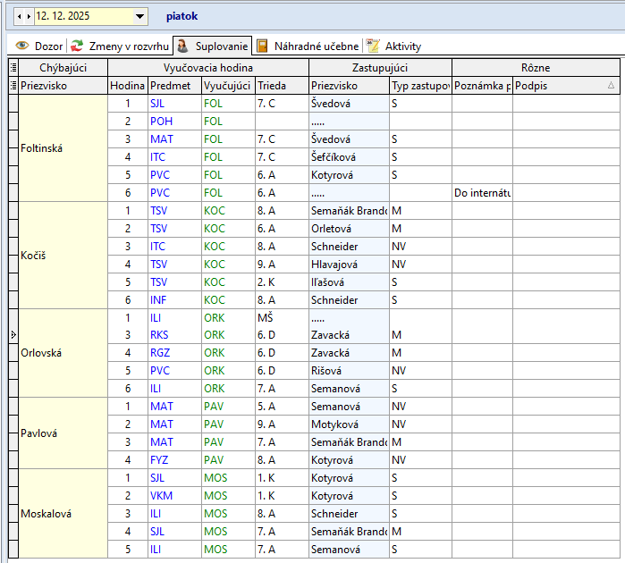 16.12.2025 Spojené triedy 1.K +2.K, učí sa podľa 2.K od 2. hodiny