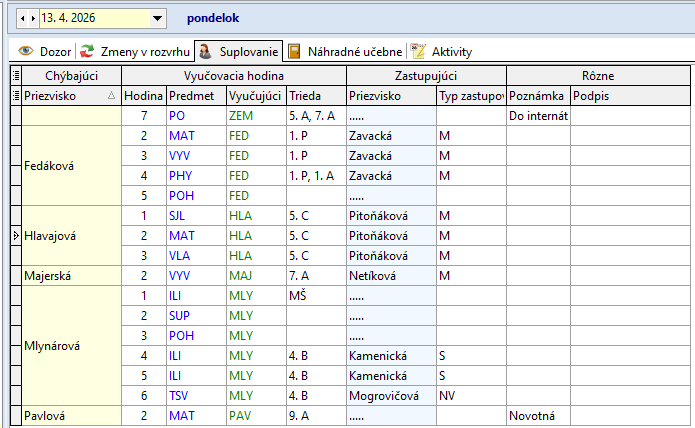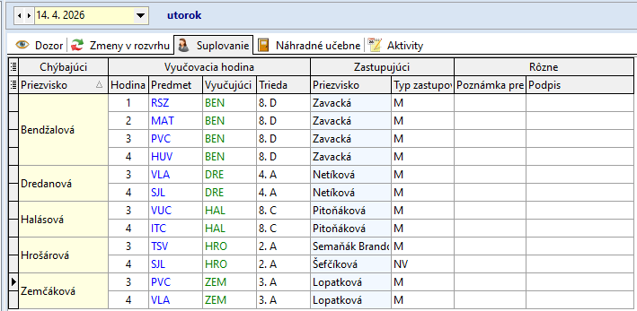 9.10.2023: p. Zavacká supl. rozvrh p. Halásovej