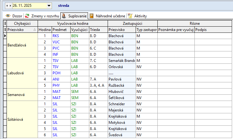 Ružbacká A. 1. - 5. hodinu zastupuje P. Zavacká