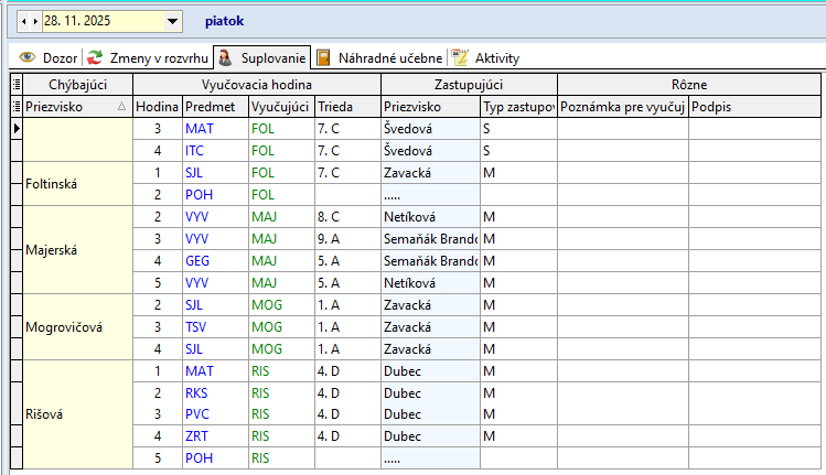 9.10.2023: p. Zavacká supl. rozvrh p. Halásovej