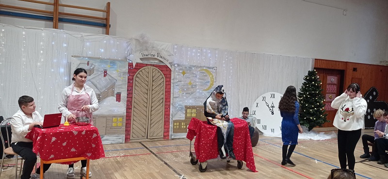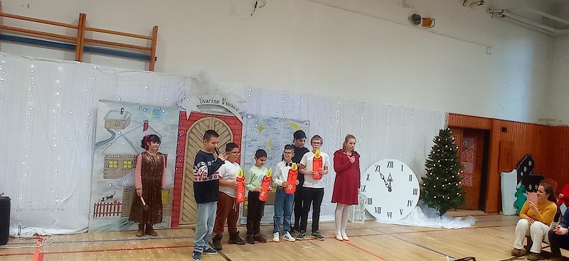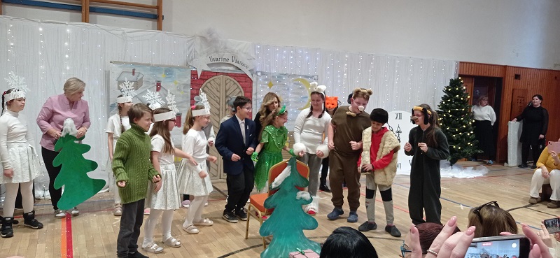 Vo štvrtok 18.12. 2025 sa v našej škole konala vianočná akadémia. Ako šibnutím prútika sa telocvičňa zmenila na divadelnú sálu. Pomáhali všetci - učitelia, vychovávatelia, asistenti aj pán školník s údržbárom a dokonca aj pani upratovačky. Celkové prípravy a nácviky trvali niekoľko týždňov, ale usilovnosť sa oplatila.