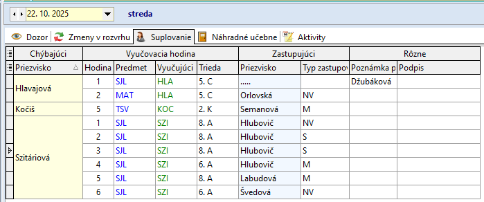 9.10.2023: p. Zavacká supl. rozvrh p. Halásovej