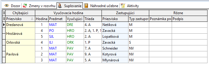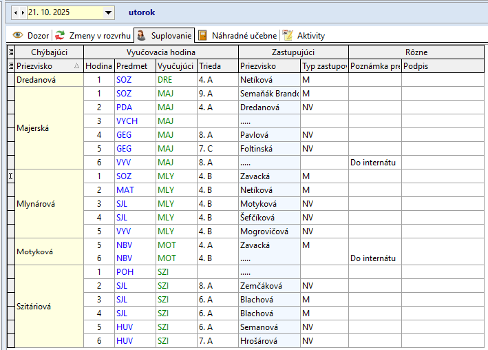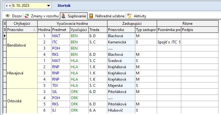 9.10.2023: p. Zavacká supl. rozvrh p. Halásovej