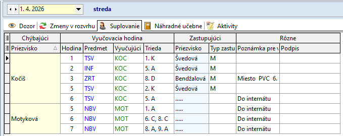 Žiaci, ktorí sa nezúčastnia korčuľovania: Bendík (2.A), Tulej (4.A), Kováčová (9.A), Bilá (8.A) sa zhromaždia v 2.A. Dozor v 2.A má počas 4. hodiny – Džubáková, počas 5. hodiny - Krajňáková