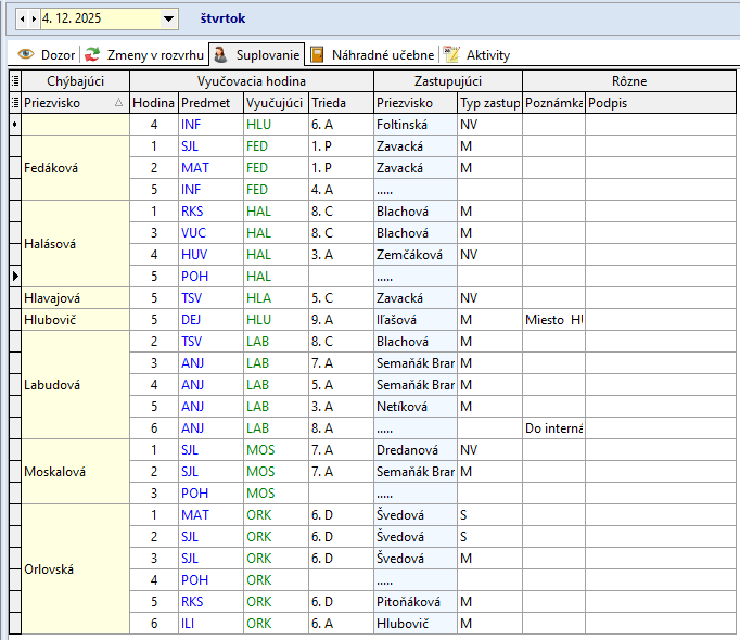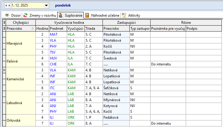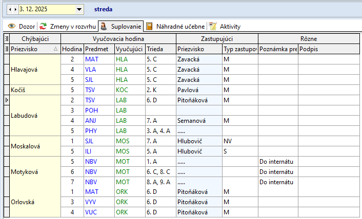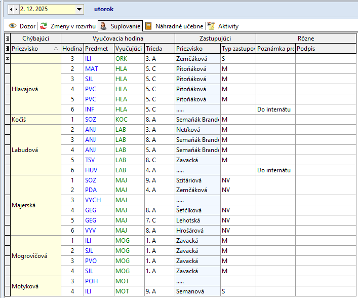 Žiaci, ktorí sa nezúčastnia korčuľovania: Bendík (2.A), Tulej (4.A), Kováčová (9.A), Bilá (8.A) sa zhromaždia v 2.A. Dozor v 2.A má počas 4. hodiny – Džubáková, počas 5. hodiny - Krajňáková