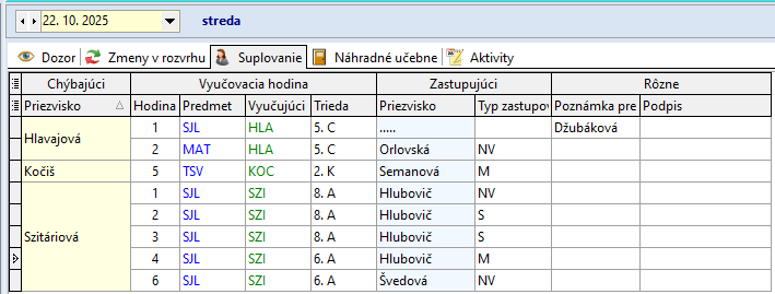 9.10.2023: p. Zavacká supl. rozvrh p. Halásovej