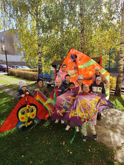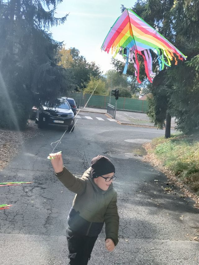 Žiaci 1.A triedy si spríjemnili októbrové učenie púšťaním šarkanov. Počasie bolo super aj vetrík pomohol vznášať šarkanov vo vzduchu a všetkým sa to páčilo.